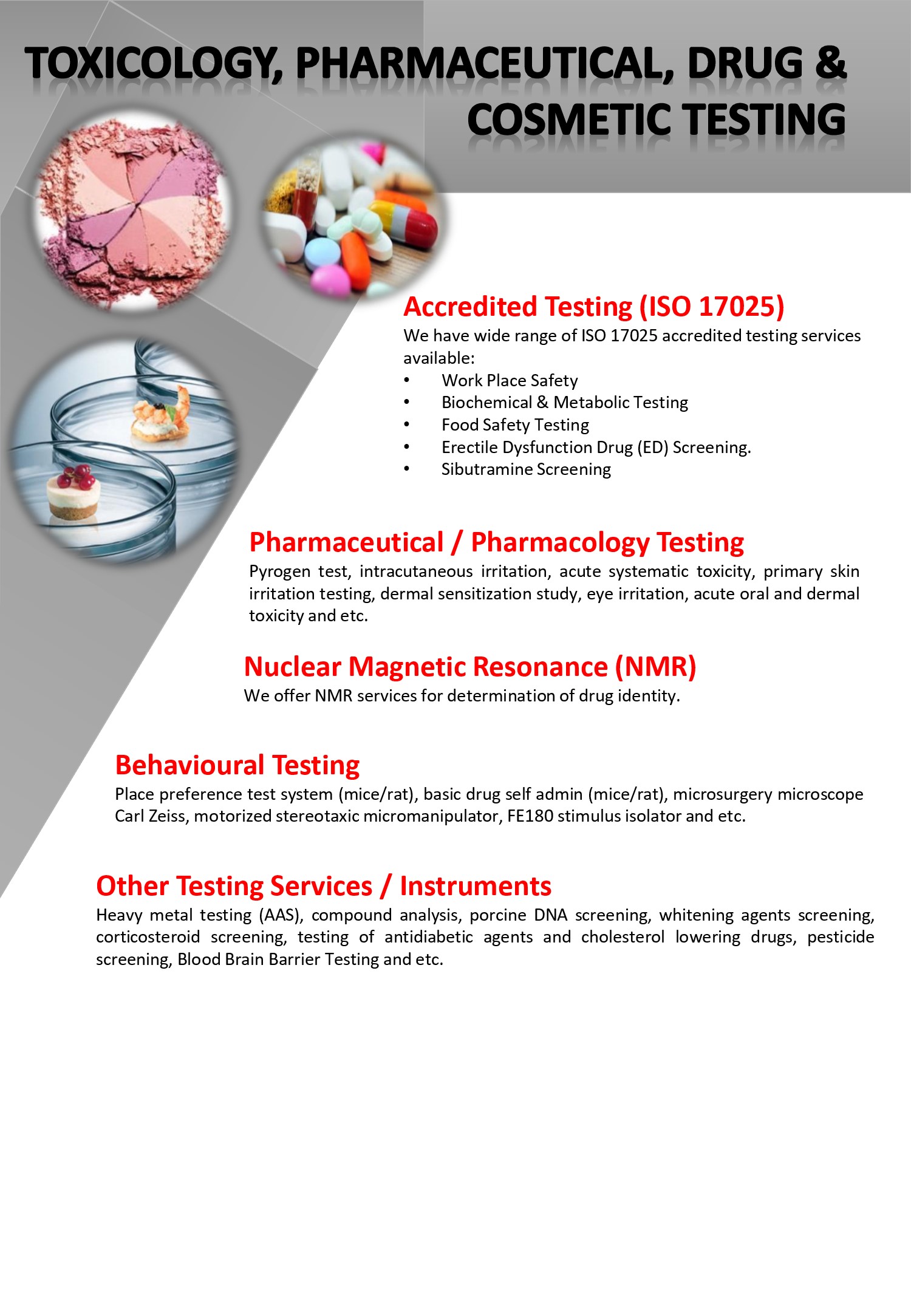 Toxicology/Drug/ Pharmaceutical & Cosmetic Testing
